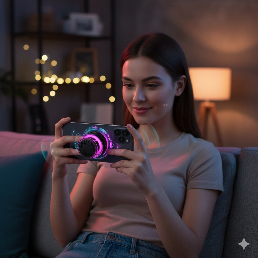 El parlante cuenta con un imán de alta adherencia que lo mantiene firme en superficies metálicas y dispositivos compatibles con MagSafe durante el uso normal.