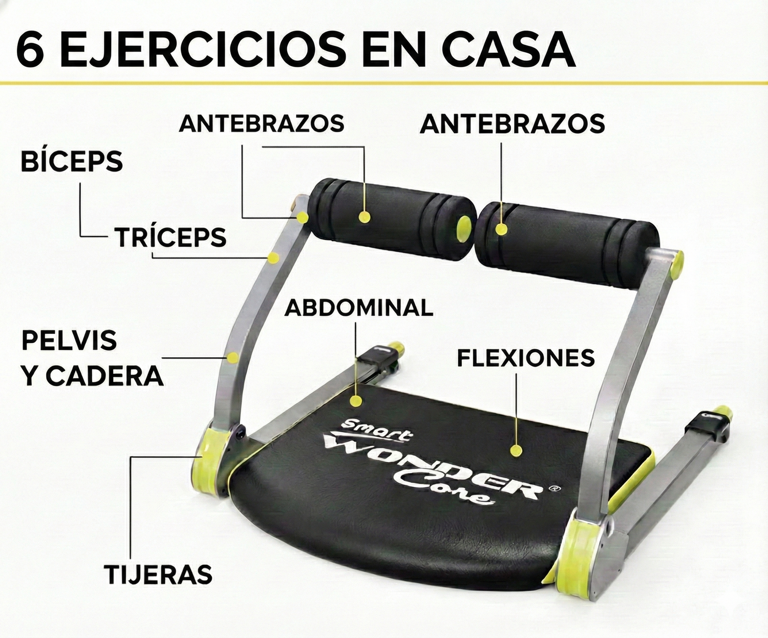 Puedes trabajar abdomen, oblicuos, glúteos, brazos, piernas y espalda gracias a sus 6 funciones en 1.
